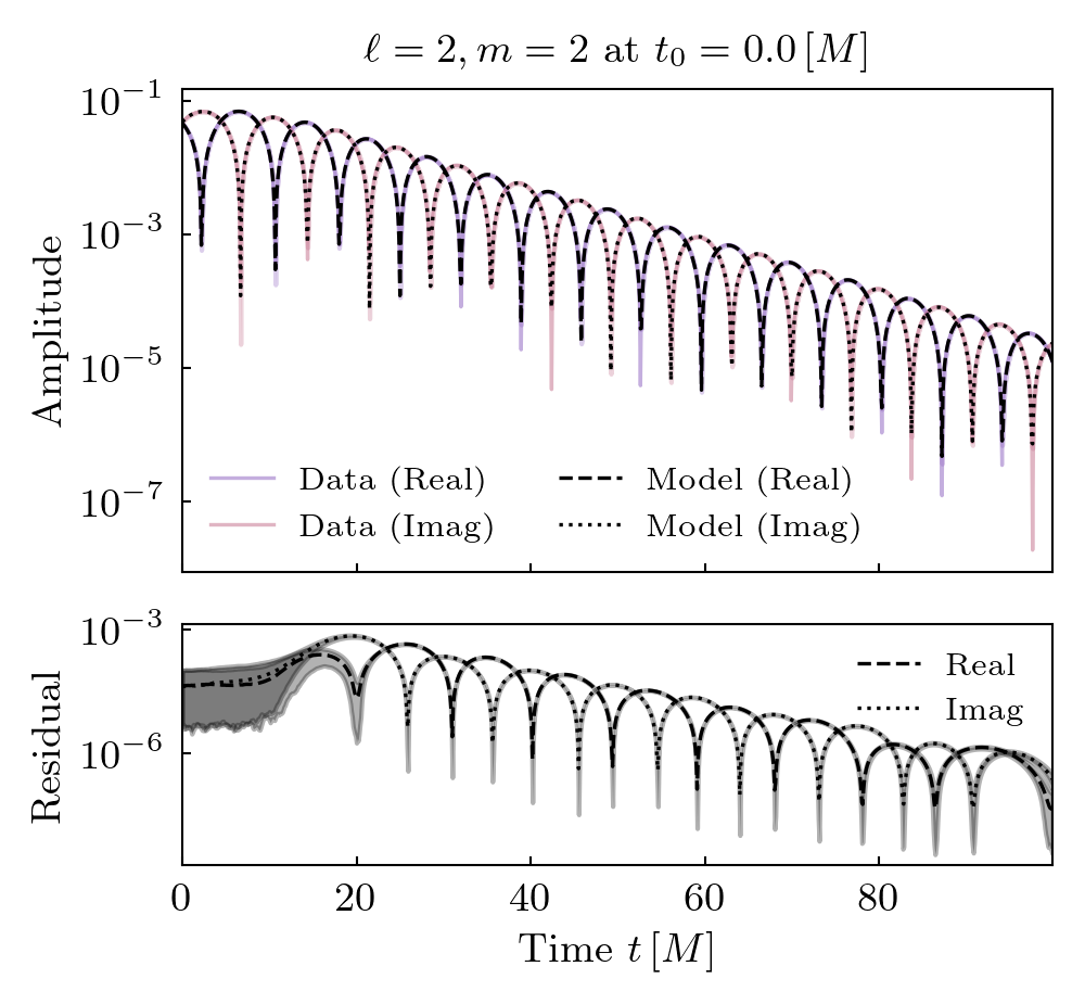 Model fits and data with residuals are shown. Start time is the earliest step at which the model fits well.